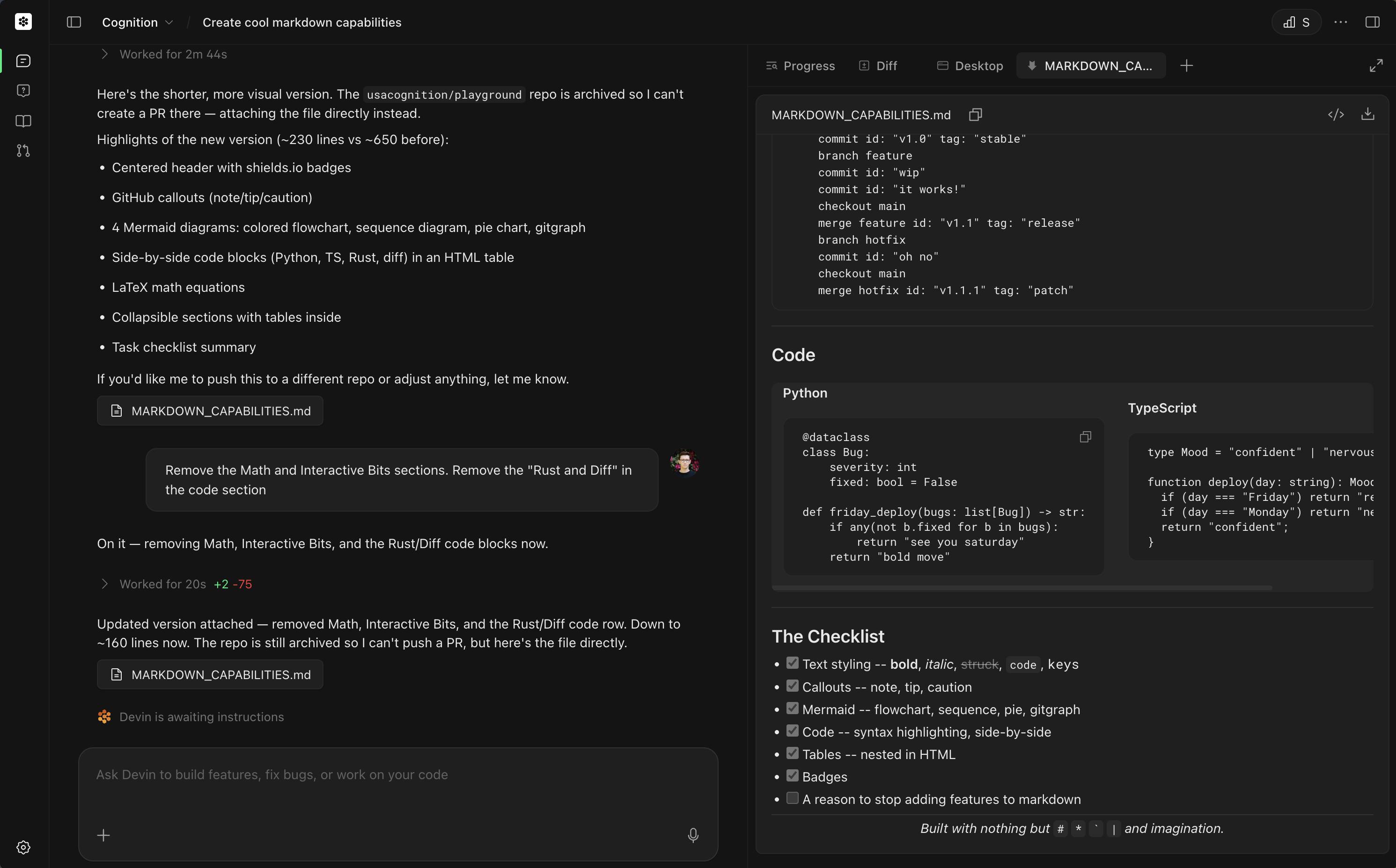 Lancio di Devin 2.2Devin 2.2 è il risultato di centinaia di miglioramenti, grandi e piccoli, introdotti nelle ultime settimane, tra cui: